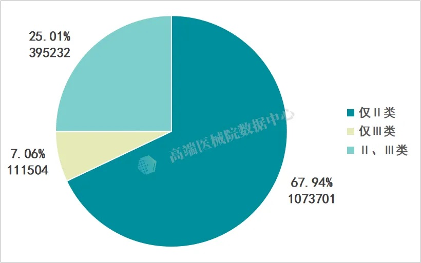 截至2025年6月,全国仅经营Ⅱ类的企业1073701家,较去年年底增长约5.4%;全国仅经营Ⅲ类的企业111504家,较去年年底减少约1.1%;全国同时经营Ⅱ类、Ⅲ类产品的企业395232家,较去年年底减少约0.2%。
