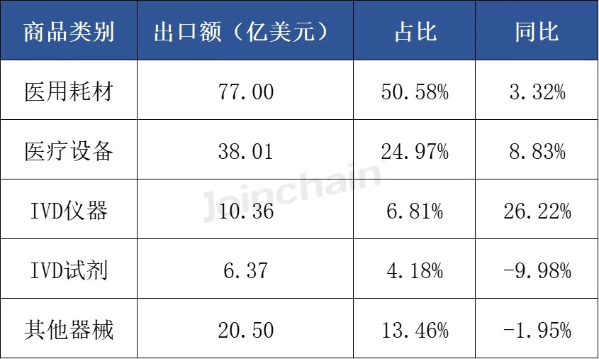 表 1 2025年第三季度中国医疗器械各商品类别出口额及占比情况 ![]() 数据来源:众成数科