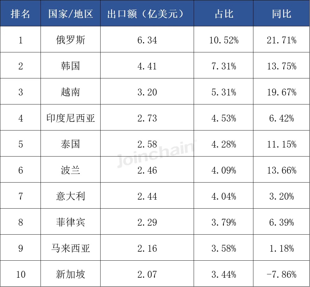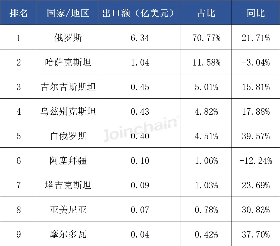 表 6 2025年第三季度我国医疗器械与独联体国家出口额分布情况 ![]() 数据来源:众成数科