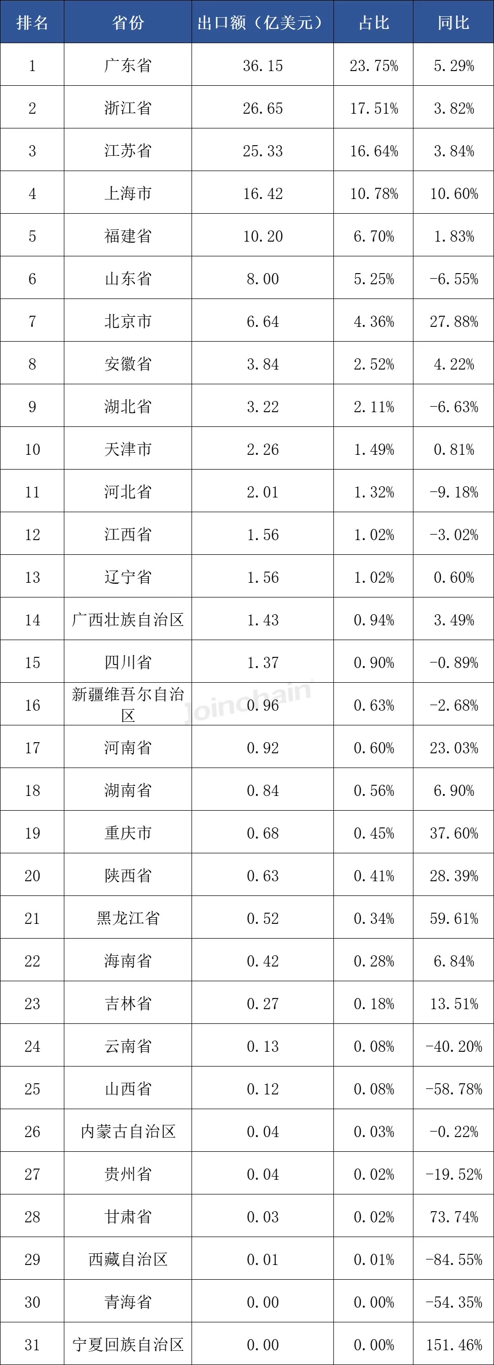 表 10 2025年第三季度我国医疗器械出口额省份(直辖市、自治区)分布情况 ![]() 数据来源:众成数科 |