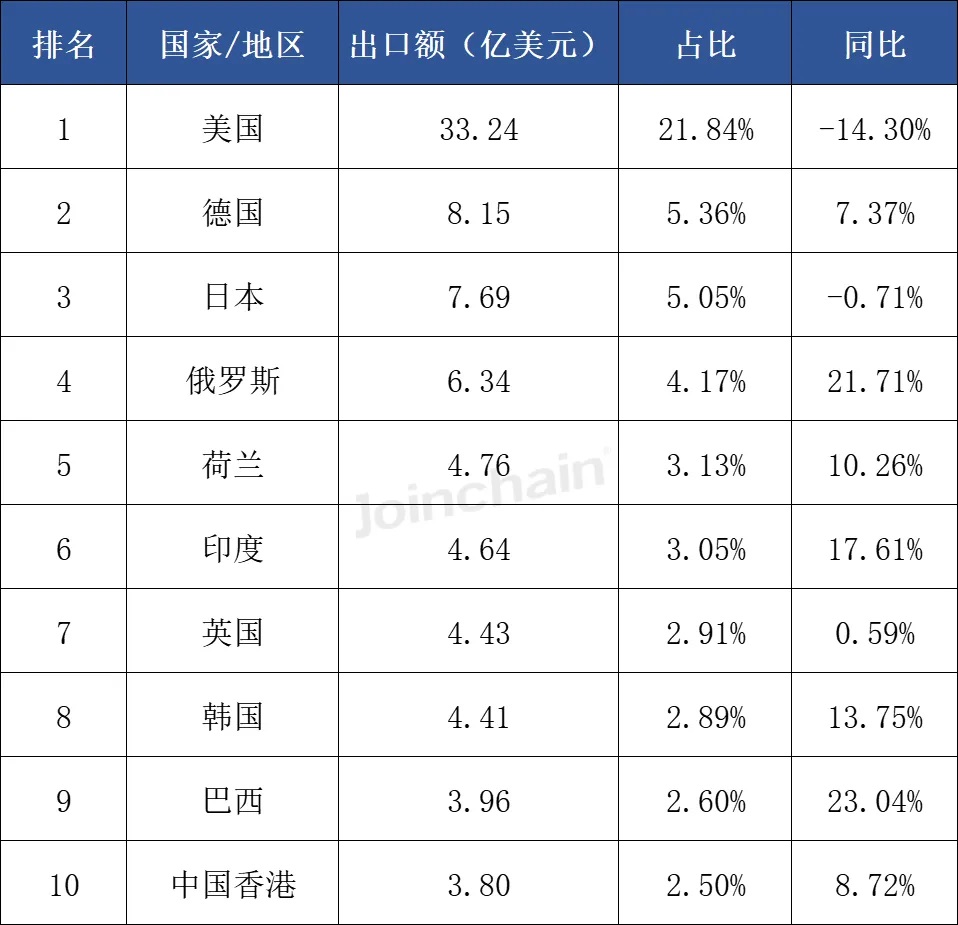 表 8 2025年第三季度我国医疗器械出口额Top10国家/地区 ![]() 数据来源:众成数科