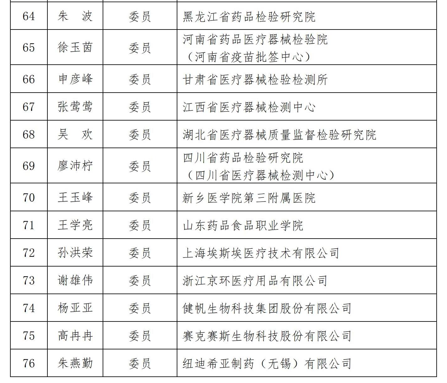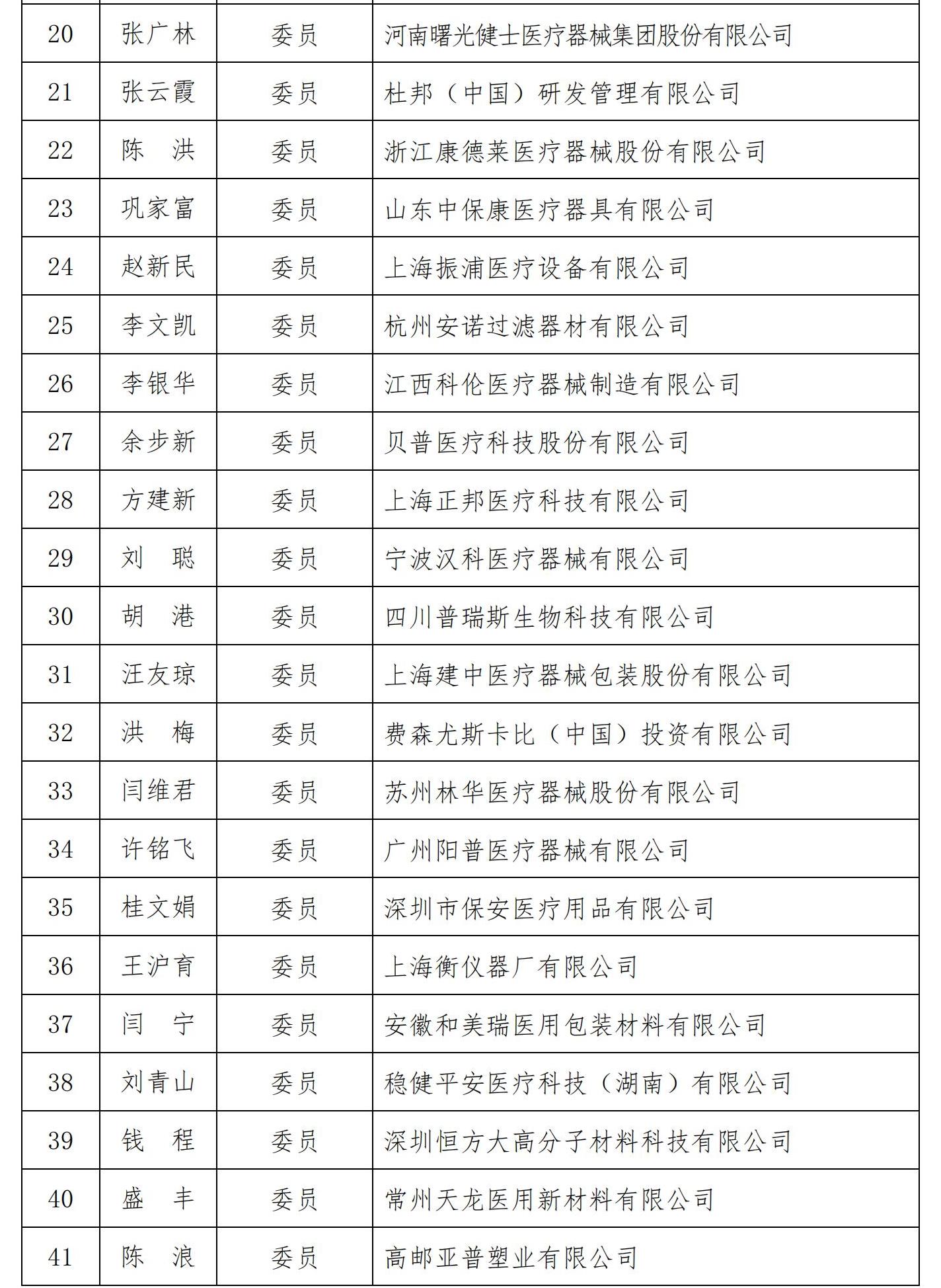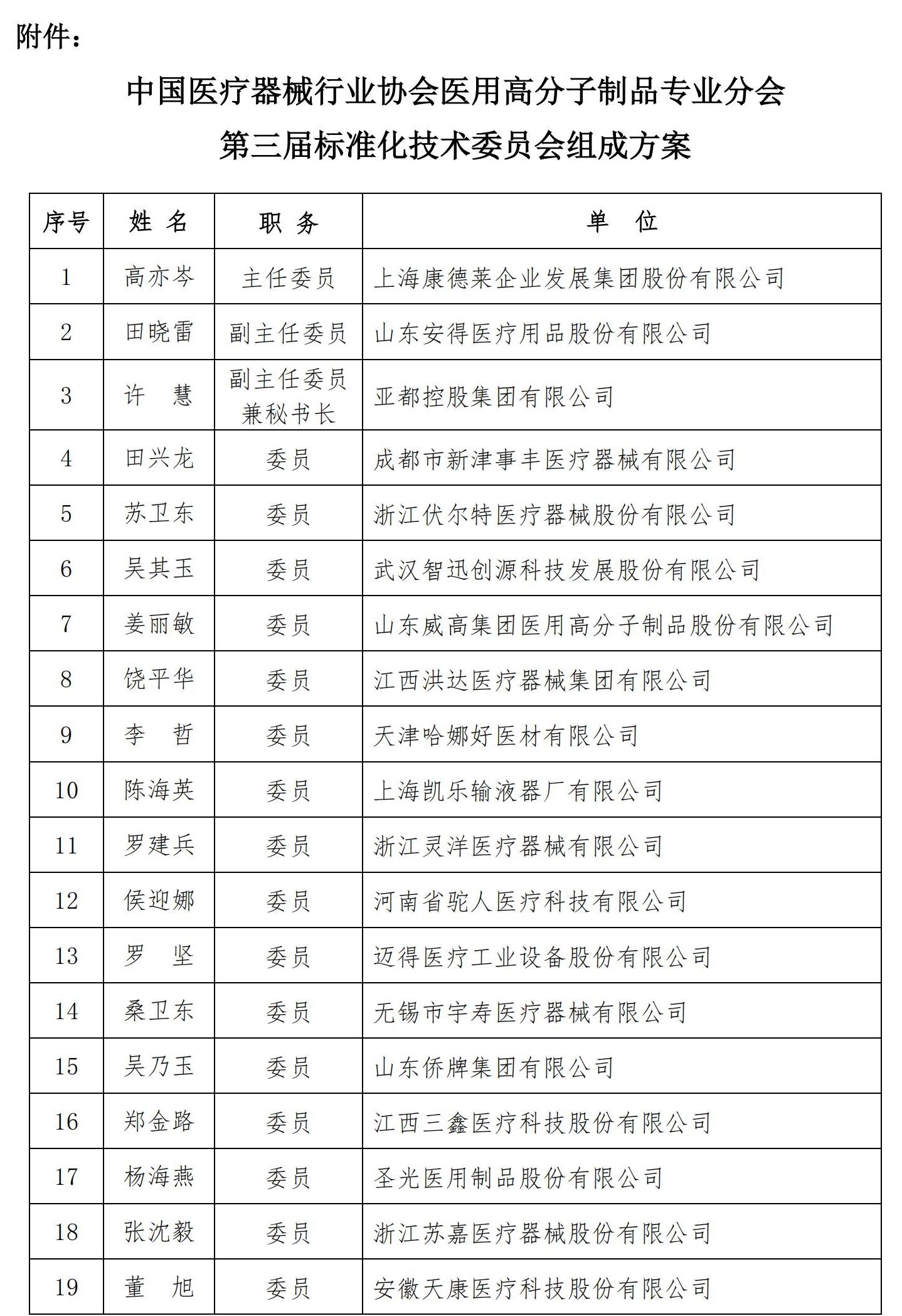 附件:中国医疗器械行业协会医用高分子制品专业分会第三届标准化技术委员会组成方案