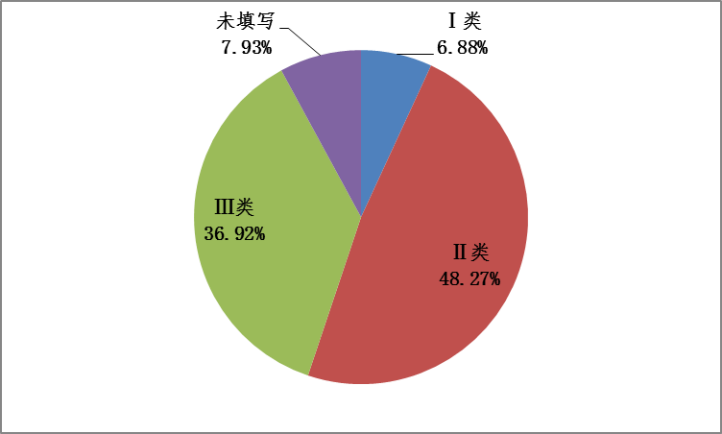 2023年,国家药品不良反应监测中心收到的医疗器械不良事件报告中,涉及Ⅲ类医疗器械的报告320,171份,占报告总数的36.92%;涉及Ⅱ类医疗器械的报告418,628份,占报告总数的48.27%;涉及Ⅰ类医疗器械的报告59,691份,占报告总数的6.88%;未填写医疗器械管理类别的报告68,750份,占报告总数的7.93%。(图5)。