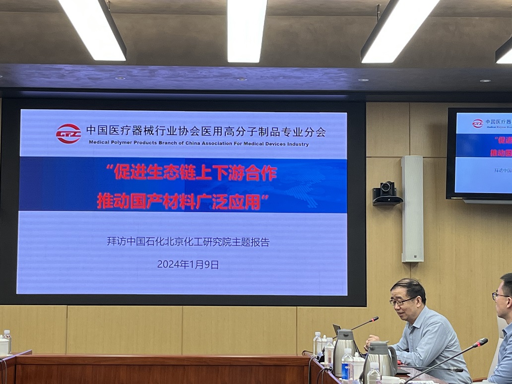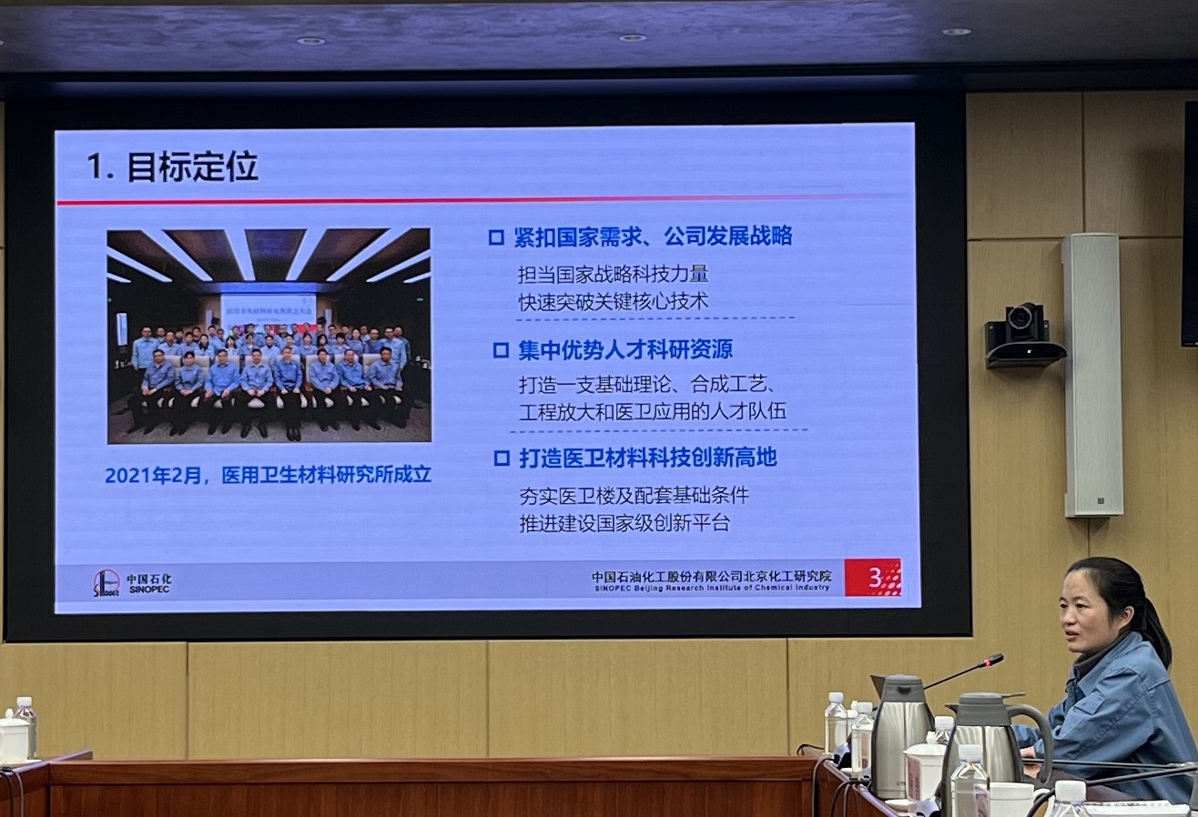 北京化工研究院医用卫生材料研究所王颖所长做了《北化院医用高分子新材料开发成果和研究进展》专题演讲。 通过本次交流座谈活动,高分子分会与北京化工研究院就各自领域的平台优势、专业范围、工作职能、社会责任等相关事宜进行了详细的沟通交流,特别是在协会组织、标准化工作,以及国产医用高分子新材料的生物学评价、验证确认、推广应用、风险管控等方面进行了充分的研讨,进一步促进了双方的相互了解,达成了广泛共识,并为今后的加深合作打下了良好的基础。 莺歌燕舞,奋进当时。在会议的尾声中,大家一致认为,随着我国医疗器械产业的高速发展,人类大健康事业的不断提升,特别是对医用高分子制品新材料的开发研究与国产替代,以及对整个产业链的延伸扩展等诸多方面都提出了更高的要求。在新的发展形势下,科研院所的国之担当与社会责任更加突显,行业协会的桥梁纽带与服务职能更加迫切。伴随着医疗器械新法规的不断完善,专业化的要求越来越高,行业协会、科研院所只有充分发挥各自特长,优势互补,深化合作,不断促进协会、科研院所与医疗器械企业间的交流沟通,共同为人类的健康事业履行我们的社会责任,做出我们应尽的奉献!