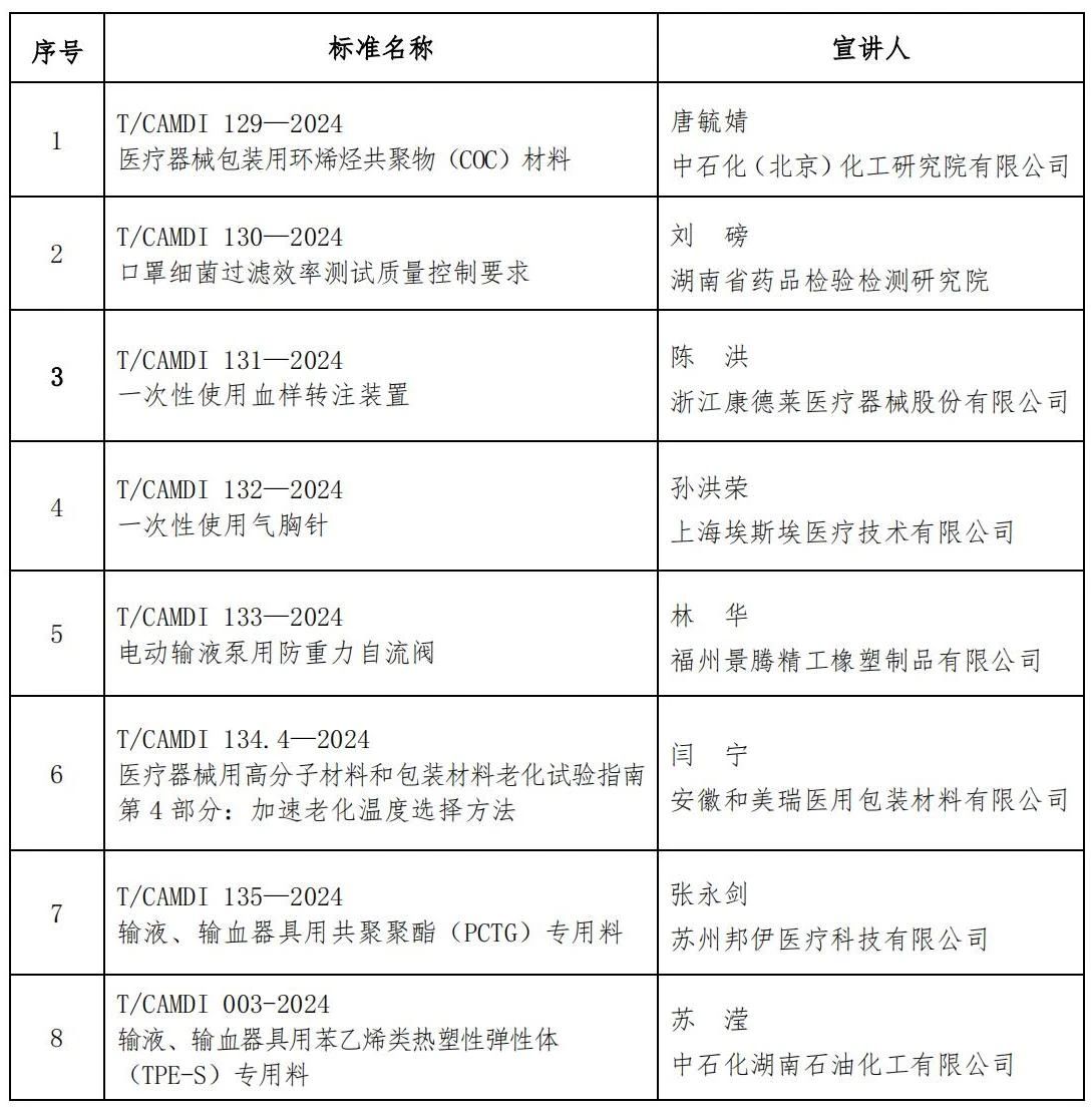 为加速标准落地实施,5月27日,分会对2024年发布的T/CAMDI 003—2024《输液、输血器具用苯乙烯类热塑性弹性体(TPE-S)专用料》等8项团体标准采用6个钉钉群同步直播的形式举办了线上宣贯会。各标准起草人运用简洁明了的语言,精准传递标准核心要求与技术要点,助力企业快速掌握实施路径,推动技术规范向生产实践高效转化。此次宣贯会涉及的相关标准,均可在分会网站(http://www.cncamda.org)获取。 根据分会工作规划,近期将启动2026年团体标准预立项提案征集工作。有意向参与团标制定的单位,可关注分会官方公众号获取后续动态及申报指引。 ![]()