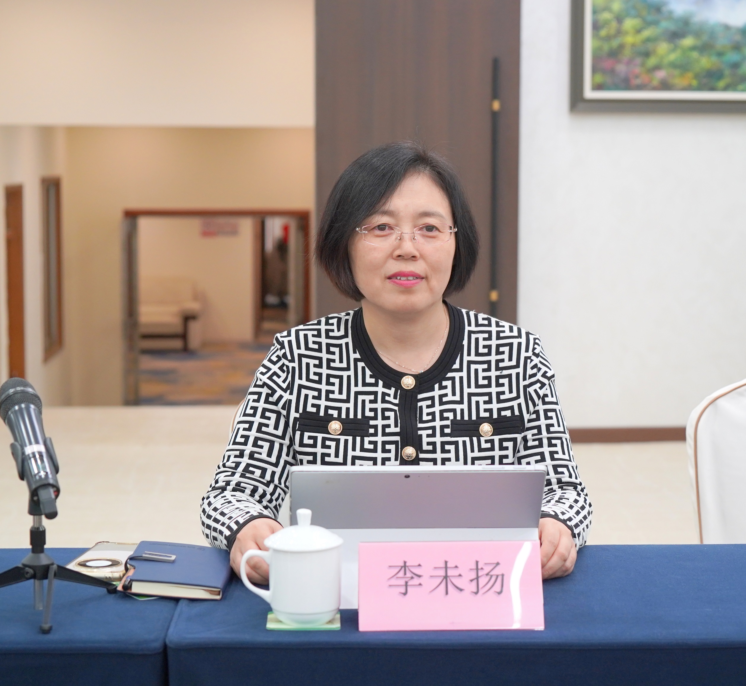 秘书长 李未扬 会议伊始,我会秘书长李未扬女士首先向各位常务理事在百忙之中来参会表示了热烈的欢迎和诚挚的感谢。她表示,此次会议的召开对于推动行业发展、加强协会内部沟通具有重要意义,并预祝会议取得圆满成功。